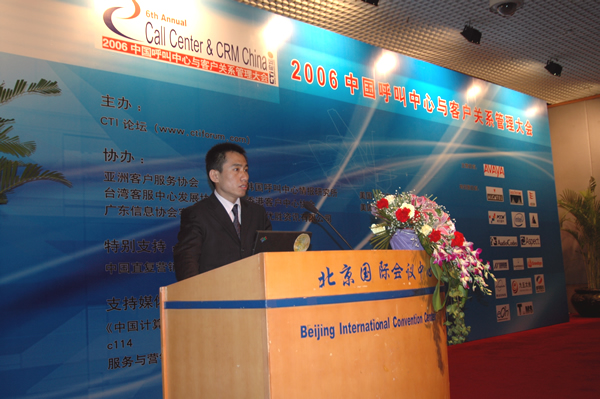 。。2006年4月3日至5日,2006中國呼叫中心與客戶關(guān)系管理大會在北京國際會議中心隆重召開,以下是4月5日上午專題演講的相關(guān)圖片報道: