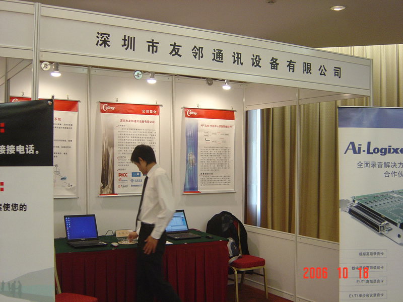 2006年10月18日,2006保險業(yè)呼叫中心應用暨電話營銷高峰研討會在北京天鴻科園大酒店隆重召開,以下是展廳參觀的相關圖片報道: