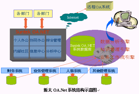 新太OA.NET系統(tǒng)采用B/S結(jié)構(gòu)設(shè)計(jì),系統(tǒng)以提供大量快速靈活的自定義功能以及許多核心平臺(tái)產(chǎn)品,如協(xié)同工作平臺(tái)、通訊平臺(tái)、知識(shí)管理平臺(tái)、信息服務(wù)平臺(tái)等,能夠幫助用戶快速實(shí)施信息化建設(shè),OA.NET系統(tǒng)的最大特色是實(shí)現(xiàn)"零代碼"維護(hù)功能,系統(tǒng)安裝后,無(wú)需編寫任何代碼就可生成各種辦公業(yè)務(wù)應(yīng)用,用戶只需幾個(gè)小時(shí)的培訓(xùn)就可以使用OA.Net提供的工具進(jìn)行復(fù)雜辦公流程的設(shè)計(jì),并且可以不需要經(jīng)過(guò)任何編碼的改動(dòng),就能輕松適應(yīng)流程變化的新情況。另外,OA.NET強(qiáng)調(diào)對(duì)企業(yè)內(nèi)部知識(shí)的有效管理和有效利用,能夠沉積企業(yè)日常的零散信息,并通過(guò)有序歸類的方式使之成為對(duì)企業(yè)有用的知識(shí)。OA.Net還提供了功能強(qiáng)大的個(gè)性化配置功能,每個(gè)員工都可以定制自己的界面風(fēng)格和功能模塊,并且可以自己建立個(gè)人的應(yīng)用環(huán)境,滿足個(gè)人的喜好。OA.Net包含了新太自主開發(fā)的業(yè)務(wù)工作流處理引擎,能夠在不用編寫代碼的情況集成其他業(yè)務(wù)系統(tǒng),實(shí)現(xiàn)了業(yè)務(wù)系統(tǒng)中的數(shù)據(jù)和辦公流程的完美結(jié)合,使得辦公應(yīng)用系統(tǒng)真正成為企業(yè)內(nèi)部的廣義化辦公門戶。