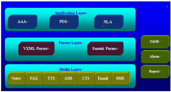SSurnon-IVR系統分為支撐系統和應用服務器兩大部分,支撐系統的核心為Browser Layer。由它來解釋和執(zhí)行流程的業(yè)務邏輯,由Media