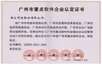 新太科技連續(xù)4年蟬聯(lián)“廣州市重點(diǎn)軟件企業(yè)”稱(chēng)號(hào)
