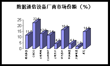 。1)市場規(guī)模: 年初各大運營商IP實驗網(wǎng)的開通以及聯(lián)通覆蓋300余城市的IP網(wǎng)絡(luò)大規(guī)模建設(shè),年中ChinaNet大提速與3期擴(kuò)容項目實施以及CNCnet開通,年末CMnet骨干網(wǎng)一期工程上馬、2000年中國數(shù)據(jù)通信設(shè)備市場可謂是熱點頻仍。根據(jù)Frost&Sullivan分析,年內(nèi)網(wǎng)絡(luò)交換機(jī)、訪問產(chǎn)品、 路由器、集線器等數(shù)據(jù)通信主要設(shè)備市場規(guī)模達(dá)到96億人民幣,同比增長36%,數(shù)據(jù)通信設(shè)備市場再次進(jìn)入高速增長期。