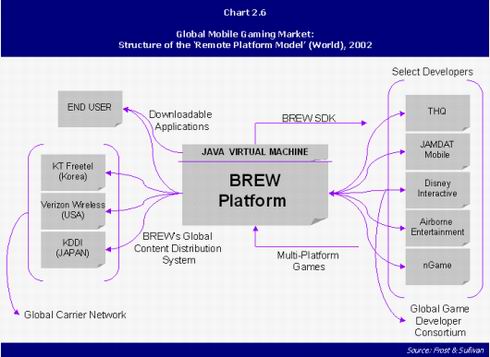 當(dāng)然,企業(yè)對未來的把握也往往和自己對這個行業(yè)的熟悉程度分不開的,所以微軟今天的策略大都帶有強烈的IT和互聯(lián)網(wǎng)的味道。而移動市場當(dāng)中的新貴高通公司,就想當(dāng)年的微軟一樣,偶然性地掌握了CDMA的核心技術(shù),同時由于移動通信在全球的興起,成了移動通信價值鏈中的重要環(huán)節(jié)之一。但是,由于所有的競爭廠家都希望自己擁有核心技術(shù),技術(shù)上略落后,但更開放的GSM得到了更多市場的青睞。為了保持自己的地位,高通采取了與微軟相似的地位,拋出了名為BREW的移動應(yīng)用平臺。與微軟在寬帶和廣電的策略相同,高通在移動通信領(lǐng)域提供從技術(shù)、服務(wù)到外包運營等全套解決方案。在移動游戲領(lǐng)域,高通為美國第一大無線運營商Verizon搭建了基于BREW的游戲業(yè)務(wù)平臺,同時負責(zé)這一平臺的運圍和與游戲提供商的合作及管理、促銷等工作。與Verizon的合作是獨家的,建立在利潤分成的基礎(chǔ)上,到現(xiàn)在為止,這種模式是移動游戲領(lǐng)域最成功的合作之一。可以說,高通把自己變成了半個運營商,同時由于擁有客戶資源和合作模式提供,高通的地位有望超過Verizon。