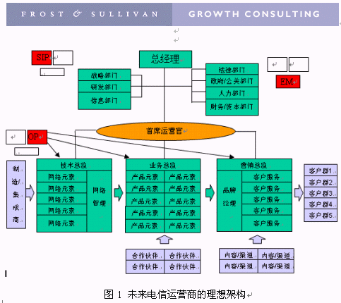 Frost & Sullivan(中國(guó))公司正在積極的尋求業(yè)內(nèi)最廣泛的合作,對(duì)電信運(yùn)營(yíng)管理的變革進(jìn)行全方位的研究,公司即將出版的研究報(bào)告--《中國(guó)電信運(yùn)營(yíng)企業(yè)理想組織架構(gòu)的演進(jìn)》會(huì)對(duì)電信運(yùn)營(yíng)管理變革和組織架構(gòu)演進(jìn)等諸多問(wèn)題進(jìn)行詳細(xì)分析和研究,并給出我們的答案。