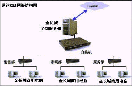 易達(dá)CRM應(yīng)用于小型網(wǎng)絡(luò)環(huán)境(或單機(jī)應(yīng)用),對于中小型企業(yè)只需建立PC級局域網(wǎng)絡(luò)環(huán)境即可,同時可以通過服務(wù)器聯(lián)入INTERNET,便于異地業(yè)務(wù)人員的數(shù)據(jù)錄入和EMAIL數(shù)據(jù)傳送。(在此易達(dá)CRM與相關(guān)品牌的PC服務(wù)器、PC商用機(jī)建立戰(zhàn)略合作關(guān)系,以較優(yōu)惠的價格向中小型企業(yè)提供性價比很高的全面解決方案包,這是對中小型企業(yè)用戶、硬件廠商、易達(dá)軟件三方均有益的解決方案)。