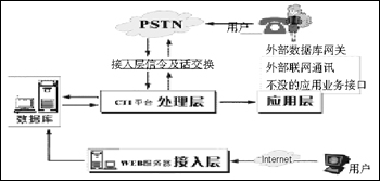 處理層為系統(tǒng)核心層,主要負(fù)責(zé)系統(tǒng)的管理及指揮,如系統(tǒng)數(shù)據(jù)庫IVR語音交互式服務(wù)、系統(tǒng)數(shù)據(jù)庫和移動網(wǎng)(聯(lián)通和移動)及各傳呼臺信令的交換。