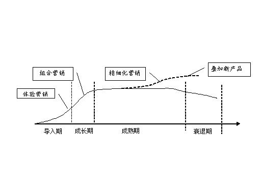 漏話業(yè)務(wù)是對(duì)現(xiàn)有基礎(chǔ)電信業(yè)務(wù)的延伸和補(bǔ)充,是建立在基礎(chǔ)通話服務(wù)基礎(chǔ)上的功能型增值業(yè)務(wù),在業(yè)務(wù)推廣中,應(yīng)根據(jù)業(yè)務(wù)的不同的發(fā)展階段,分別在業(yè)務(wù)的導(dǎo)入期、成長(zhǎng)期、發(fā)展期和衰退期采取不同的營(yíng)銷手段和措施,如下圖所示。