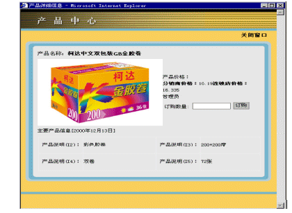 在用戶選擇一個分類時,此分類下的產(chǎn)品將會被列出。用戶可以直接在想要購買的產(chǎn)品后填寫購買數(shù)量,一次可以填寫多個產(chǎn)品。這樣在處理產(chǎn)品訂購的時候,大大的提高了效率。同樣,用戶也可以點擊詳細(xì)信息鏈接查看產(chǎn)品的詳細(xì)信息(參看圖2)。