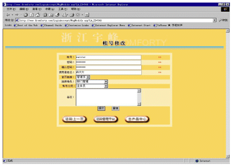 帳號系統(tǒng)主要是為適應(yīng)一個分銷商內(nèi)部會有多個不同等級的人使用這個系統(tǒng)。對于分銷商而言,它可以建立多個帳號,并為每個帳號分配不同的權(quán)限,以及每個帳號可以對應(yīng)管理不同下屬企業(yè)(參看圖5和圖6)。還可以為不同的帳號提供不同的進(jìn)入頁面,使得用戶使用更加方便。