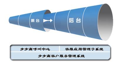步步高客服體系架構(gòu)在步步高現(xiàn)有的客服中心基礎(chǔ)上,主要由兩部分構(gòu)成:前臺呼叫中心和后臺客服應(yīng)用子系統(tǒng)。