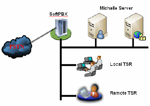 東柏SoftPBX呼叫中心基于Asterisk軟件和Digium卡構(gòu)建,支持4個(gè)E1/T1接入PSTN網(wǎng)絡(luò),通過(guò)IP接入到企業(yè)內(nèi)網(wǎng)及外部網(wǎng)絡(luò)。分機(jī)支持IP軟電話、IP硬電話、模擬分機(jī)等。在本方案中,每個(gè)坐席配備一臺(tái)計(jì)算機(jī),通過(guò)Michelle客戶端(內(nèi)置軟電話)撥打接聽電話并進(jìn)行業(yè)務(wù)處理,同時(shí)系統(tǒng)還提供市場(chǎng)活動(dòng)管理、外撥名單分配、呼入路由、語(yǔ)音導(dǎo)航、通話錄音、在線監(jiān)控等功能。本方案還提供了部分IP Office的功能,如一號(hào)通、語(yǔ)音郵箱、語(yǔ)音會(huì)議等。