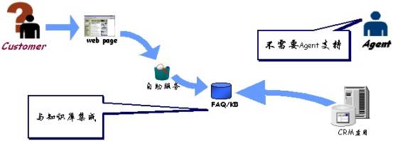 自助服務(wù):實(shí)際上,客戶咨詢的很多問題都屬于FAQ。對于這類問題,Quintus WebCenter提供“自助服務(wù)”,用戶無須客服代表的幫助,即可快速獲得答案,這一方面可減少企業(yè)客服代表的數(shù)量,另一方面提高了用戶咨詢的響應(yīng)速度。此外,CRM的管理人員可通過FAQ管理加入新的FAQ,或去掉過時(shí)的FAQ。
