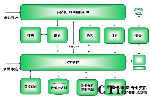 多媒體接入方式,應(yīng)對以混合業(yè)務(wù)處理的高效座席處理,才是現(xiàn)代化、高效率的聯(lián)絡(luò)中心業(yè)務(wù)模式。而聯(lián)絡(luò)中心后臺的業(yè)務(wù)處理卻是統(tǒng)一的,其構(gòu)架層次分明,如下圖示: