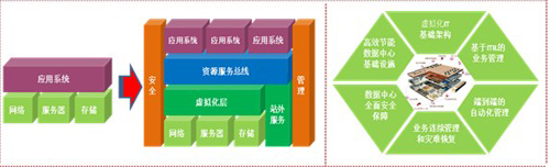 企業(yè)的發(fā)展和業(yè)務(wù)的創(chuàng)新越來越離不開IT技術(shù)的應(yīng)用,傳統(tǒng)的以項(xiàng)目為建設(shè)單元的數(shù)據(jù)中心造成了煙囪式的建設(shè)、分布式的開發(fā)、分離式的運(yùn)維,使眾多企業(yè)的 IT 形成了復(fù)雜的、孤立的架構(gòu),信息孤島隨處可見,無法提供靈活、安全和易于擴(kuò)展的應(yīng)用環(huán)境,從多方面影響了業(yè)務(wù)運(yùn)營的效果。隨著商業(yè)模式的不斷創(chuàng)新、IT技術(shù)的不斷發(fā)展,業(yè)務(wù)與IT日益密切,傳統(tǒng)的數(shù)據(jù)中心建設(shè)已經(jīng)無法滿足未來業(yè)務(wù)發(fā)展的需要,難于部署新的應(yīng)用與服務(wù),設(shè)備利用率低下,業(yè)務(wù)彈性較難,無法保證系統(tǒng)和應(yīng)用的可用性和可靠性,同時(shí)不斷上升的能源成本和能源需求、機(jī)房空間需求阻礙了業(yè)務(wù)的發(fā)展。