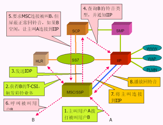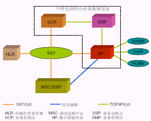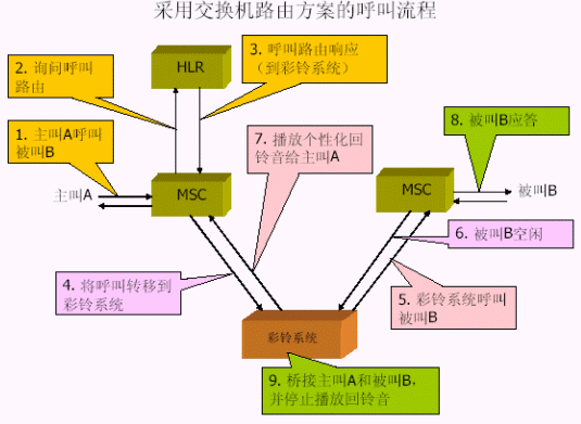 1. 交換機(jī)方式對現(xiàn)有的移動交換機(jī)進(jìn)行了流程改造,并添加了彩鈴智能外設(shè)進(jìn)行業(yè)務(wù)流程控制和業(yè)務(wù)數(shù)據(jù)維護(hù)
