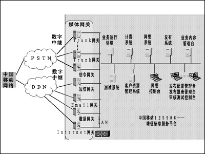 中國移動1259061增值信息服務(wù)平臺采用青牛軟件公司提供的網(wǎng)絡(luò)中間件產(chǎn)品。這個平臺采用移動通信網(wǎng)絡(luò)負(fù)責(zé)處理全國的呼叫接入,將來自全國的電話呼叫通過長途網(wǎng)從北京局匯入到該增值信息服務(wù)平臺上。呼叫分布到多臺服務(wù)器上,青牛網(wǎng)絡(luò)中間件實現(xiàn)話路的處理、語音的播報、數(shù)據(jù)的統(tǒng)計等等。
