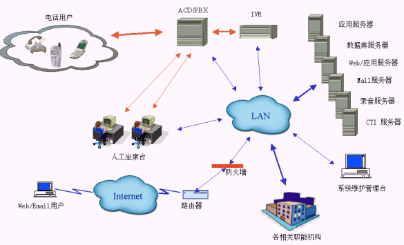 。。本套系統(tǒng)的建設(shè)規(guī)模為:30路IVR,8個(gè)人工座席,呼叫中心接入中繼數(shù)為1E。信息平臺(tái)以AVAYA為PBX、青牛USE為CTI、青牛ATS為IVR作為基礎(chǔ)平臺(tái),能夠支持WEB訪(fǎng)問(wèn)、電話(huà)呼入/呼出、傳真收發(fā)、E_mail等多種訪(fǎng)問(wèn)手段。
