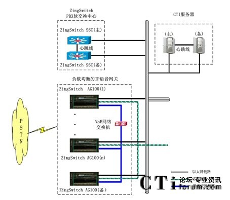 同時基于ZingSwitch® CVNET平臺的系統(tǒng)網絡架構中,AG100(IP語音網關)自身具有99.999%的高穩(wěn)定性外,具有負載均衡能力保證語音接續(xù)的不中斷。