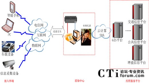 應(yīng)用服務(wù)平臺:以GIS平臺為主,配合交通信息平臺、公共信息平臺以及餐飲酒店娛樂信息服務(wù)平臺、社交網(wǎng)站服務(wù)平臺、車輛服務(wù)信息平臺、應(yīng)急救援服務(wù)平臺、媒體內(nèi)容服務(wù)平臺等各類型的應(yīng)用服務(wù),根據(jù)應(yīng)用需求提供相應(yīng)的服務(wù)和數(shù)據(jù)。各應(yīng)用服務(wù)通過云計算、SOA、數(shù)據(jù)總線等技術(shù)實(shí)現(xiàn)互聯(lián)互通、信息共享,同聯(lián)絡(luò)中心應(yīng)用集成,并通過聯(lián)絡(luò)中心向用戶提供服務(wù)。