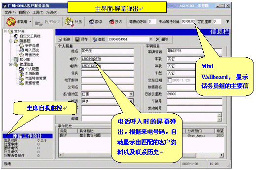 當(dāng)客戶(hù)的電話(huà)被轉(zhuǎn)到客戶(hù)服務(wù)人員時(shí),客戶(hù)的所有相關(guān)信息將自動(dòng)彈出顯示在服務(wù)人員的電腦屏幕上,包括歷史接觸記錄信息等,這樣就能提供最具有針對(duì)性和高效率的服務(wù)。如果是新客戶(hù),那么服務(wù)人員將即時(shí)錄入信息,動(dòng)態(tài)擴(kuò)充數(shù)據(jù)庫(kù)。