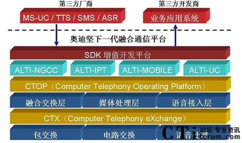 強(qiáng)雄飛:首先,從技術(shù)標(biāo)準(zhǔn)上,奧迪堅(jiān)具有獨(dú)一無二的CTX(Computer Telephony Exchange)技術(shù)標(biāo)準(zhǔn),完全自主知識產(chǎn)權(quán)的融合交換技術(shù),可以將IP包交換、電路交換及語音處理的機(jī)制融合在一起,可以將IP-PBX與CTI功能的核心融合?梢詫(shí)現(xiàn)完全無縫融合的應(yīng)用,將IP語音處理與模擬語音處理統(tǒng)一地在一個系統(tǒng)上實(shí)現(xiàn),將呼叫中心應(yīng)用與辦公電話應(yīng)用有機(jī)地整合在一起。