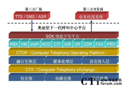 傳統(tǒng)型的語音交換機在設(shè)計之初,只側(cè)重于語音交換能力,并沒有考慮到呼 叫中心這種需要集成數(shù)據(jù)的應(yīng)用模式,因此基于傳統(tǒng) TDM 交換機的呼叫中心系 統(tǒng)都需要外掛 CTI 服務(wù)器,至于基于語音板卡、傳統(tǒng)型 IP-PBX 或軟交換的呼叫 中心系統(tǒng)也不例外。而奧迪堅 IP 呼叫中心平臺在設(shè)計伊始,就專門針對于呼叫 中心的應(yīng)用,在底層已經(jīng)將 PBX、CTI、IVR 等核心功能緊密地融合在一起了, 在系統(tǒng)集成度方面遠遠優(yōu)于傳統(tǒng) TDM 交換機、語音板卡、傳統(tǒng)型 IP-PBX 或軟 交換的解決方案。