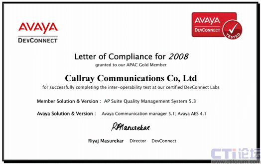 深圳市友鄰通訊設(shè)備有限公司的AP Suite呼叫中心質(zhì)量管理系統(tǒng)經(jīng)過測試,通過了AVAYA DevConnect 的認證。
