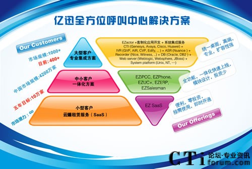 3、CTI論壇記者:億迅從1999至今,一共開創(chuàng)了400多家大型企業(yè)客戶,據了解億迅在未來五年目標設定為再開創(chuàng)十萬家客戶,請問億迅將如何達到上述目標?