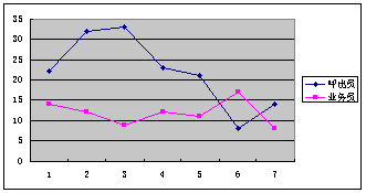圖2是呼出員與業(yè)務(wù)員的定單數(shù)對(duì)比圖。
