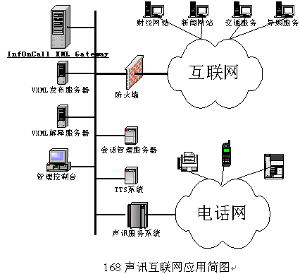 穎科VoiceXML技術(shù)成功應(yīng)用于遼寧電信168聲訊互聯(lián)網(wǎng)系統(tǒng),也是VoiceXML技術(shù)在國(guó)內(nèi)首次成功實(shí)現(xiàn)電信級(jí)應(yīng)用。在原有的聲訊平臺(tái)上,通過(guò)新添加的穎科VXML系統(tǒng),可以充分利用VoiceXML的優(yōu)勢(shì),實(shí)現(xiàn)增值業(yè)務(wù)快速得開發(fā)、部署、和更改,借助IXG工具,能夠快速得開發(fā)出互聯(lián)網(wǎng)聲訊業(yè)務(wù)。