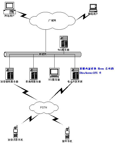 CTStart-2FX系統(tǒng)是靈訊科技公司采用加拿大Eicon網絡公司的Diva Server 2FX 語音卡開發(fā)的恒基偉業(yè)公司的網絡點歌系統(tǒng)。該系統(tǒng)運行在恒基偉業(yè)公司內部。