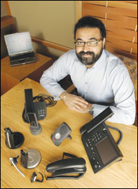 舉例來說,微軟希望在用戶向?qū)Ψ桨l(fā)送即時信息或電子郵件之前,PC軟件能夠在條件允許的情況下使你看到對方,即所謂的“一鍵(one clike)實現(xiàn)通信”(即如果你要呼叫對方,只須在他們的名字上輕點鼠標)。同時,微軟也開始充分利用電話,專門研發(fā)了代號名為“Tanjay”的語言設(shè)備。這個形似智能電話的設(shè)備通過將軟件應(yīng)用于語音設(shè)備中,使語音成為豐富多樣的PC協(xié)作體驗的一部分。
