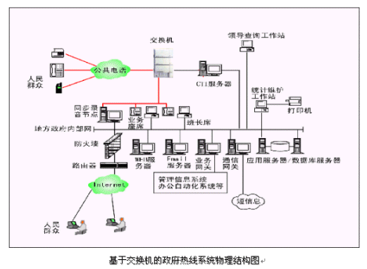 市民利用電話撥打某一特服號(hào)碼(如12345)進(jìn)入政府熱線系統(tǒng),12345政府熱線系統(tǒng)依托地方政府各類業(yè)務(wù)技術(shù)支持系統(tǒng)和網(wǎng)絡(luò)系統(tǒng),通過(guò)人工受理或自動(dòng)語(yǔ)音服務(wù)等方式全天24小時(shí)不間斷地為人民群眾提供各種服務(wù);形成了對(duì)外服務(wù)于百姓的無(wú)形窗口,對(duì)內(nèi)管理、分析、決策系統(tǒng)相結(jié)合的呼叫中心。