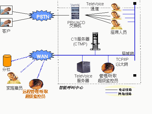 遠(yuǎn)程家庭辦公雇員支持:錄音裝備和家庭辦公雇員個(gè)人電腦之間,通過(guò)專用線、ADSL 或 ISDN 等, 甚至把在家進(jìn)行的通話內(nèi)容存放到總部的服務(wù)器中做錄音保存和控制