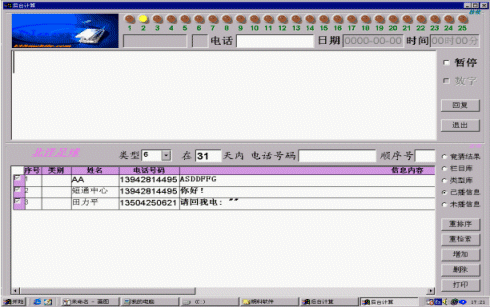 后臺主要完成對短信息的收發(fā),包括群收、群發(fā)的處理,還有生日祝福、定時發(fā)送、短信中心號碼的設置等(參見使用說明書),即完成與廣播平臺無關的一些處理。