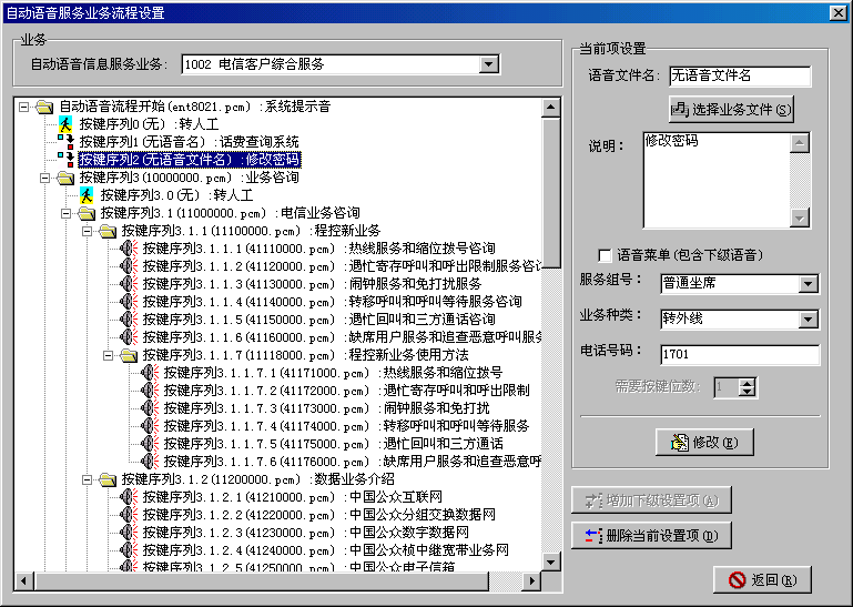 。。智能業(yè)務(wù)管理系統(tǒng)是Utron-CC2000進(jìn)行業(yè)務(wù)擴(kuò)充的主要手段。用戶如需擴(kuò)展新的業(yè)務(wù),主要通過智能業(yè)務(wù)管理系統(tǒng)向Utron-CC2000注冊該業(yè)務(wù);并為系統(tǒng)中的座席分配業(yè)務(wù)。根據(jù)實(shí)際業(yè)務(wù)的需求,生成相應(yīng)的系統(tǒng)信箱、業(yè)務(wù)腳本、服務(wù)項(xiàng)目等,來實(shí)現(xiàn)新業(yè)務(wù)的動態(tài)加載。