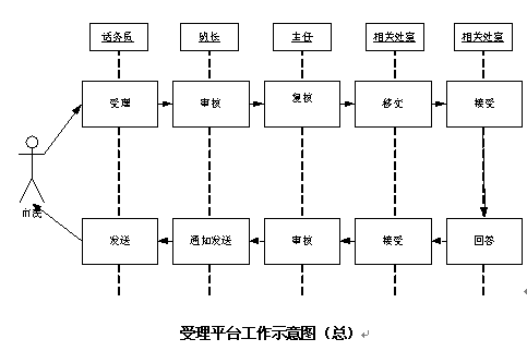 受理平臺包括:投訴受理、建議受理和疑難受理,數(shù)據(jù)扭轉都是工作流。所以系統(tǒng)設計時,我們采用工作流的實現(xiàn)方式,自定義數(shù)據(jù)類型、數(shù)據(jù)節(jié)點以及數(shù)據(jù)流向。下面列出一種常用的業(yè)務受理模式,說明業(yè)務的實現(xiàn)方法。