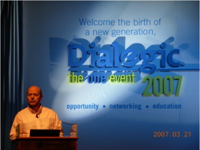 大會(huì)首先由Dialogic公司的全球資深副總裁 James Besley致辭!拔覀兓貋砹!”,James一句意味深長(zhǎng)的開場(chǎng)白引來了全場(chǎng)長(zhǎng)時(shí)間的熱烈鼓掌。是的,曾幾何時(shí),Dialogic在全球CTI領(lǐng)域是何等的輝煌,上個(gè)世紀(jì)九十年代他們?nèi)〉眠^驕人的業(yè)績(jī),占據(jù)了全球市場(chǎng)的絕大部分份額,稱之為當(dāng)時(shí)CTI行業(yè)的先驅(qū)和領(lǐng)導(dǎo)者實(shí)不為過。