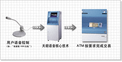 銀行ATM機24小時的不間斷服務給人們帶來了極大的方便,但煩瑣復雜的手動操作又讓人們覺得不太滿意。而新一代移植了天朗語音技術的ATM機,可以讓人們直接用聲音控制ATM機,進行查詢帳戶、存款、取款的操作,大大地方便了顧客,同時又可以讓老年人和殘疾人也享受高科技的服務。