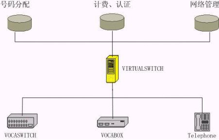 Virtual Switch 虛擬交換系統(tǒng)負責(zé)管理VOIP交換機(VOCASWITCH)、IP終端設(shè)備(VOCABOX,LANPHONE),提供和傳統(tǒng)電話業(yè)務(wù)相當(dāng)?shù)摹⒒贗P的集中呼叫控制。
