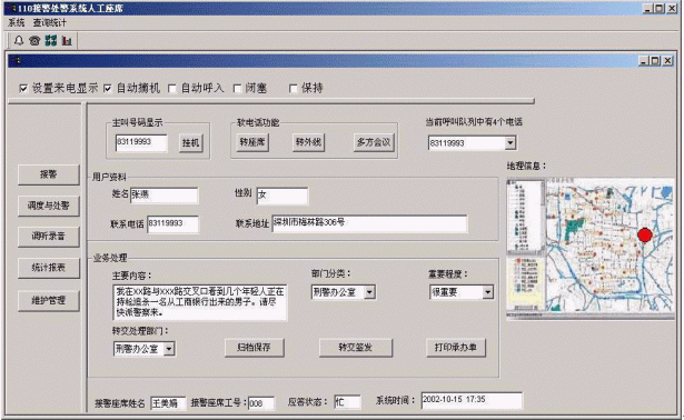 接警座席數(shù)字接警、自動(dòng)去除誤報(bào)、自動(dòng)獲取主叫巡警的相關(guān)資料;