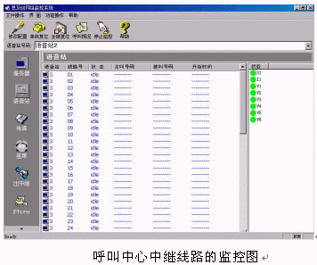 系統(tǒng)支持中國1號(hào)和7號(hào)信令,以及ISDN信令線路的接入,支持包括Dialogic、鼎銘、東進(jìn)、三匯等主流語音板卡。工控機(jī)建議采用研華公司或研祥公司的產(chǎn)品;以確保系統(tǒng)的高可靠性和穩(wěn)健性。