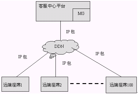 通過VOIP方式聯(lián)網(wǎng)時,語音和傳真都是通過VOIP技術(shù)處理以IP包的形式在遠(yuǎn)端座席和中心之間進(jìn)行傳輸。在主呼叫中心和遠(yuǎn)端模塊,都需要設(shè)立媒體網(wǎng)關(guān),語音和傳真的聯(lián)網(wǎng)都是通過媒體網(wǎng)關(guān)處理后通過DDN相連的。