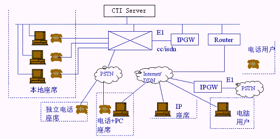 | 支持多種座席類型 | 座席類型包括:PC+耳麥、PC+電話、PC+IP電話、普通電話和IP電話。具有強(qiáng)大的坐席應(yīng)用:支持事件管理、外撥管理、客戶信息管理、公告欄等。 提供完善的遠(yuǎn)程坐席方案,在遠(yuǎn)程坐席能實(shí)現(xiàn)數(shù)據(jù)、語音同步。 支持分布式呼叫中心。 |