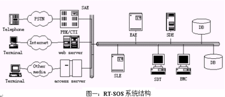 通過設(shè)計(jì)CTI程序, 實(shí)現(xiàn)電話交換設(shè)備(交換機(jī)、語音卡)和RT-SOS的通訊, 實(shí)現(xiàn)語音服務(wù)、人工坐席服務(wù)等。