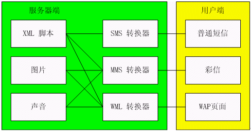 基于上述的因素,北京市萬隆然博科技有限責(zé)任公司率先在國內(nèi)推出了無線互連游戲平臺,把游戲的快速開發(fā)、游戲的運行引擎和游戲的客戶服務(wù)管理集成在一體。方便了短訊運營商的運營。同時,然博科技通過分析各類游戲的特點和無線交互方式的特點。具有獨創(chuàng)性的推出了一種游戲描述XML格式。通過然博科技提供的離線工具,游戲策劃人可以自己編寫腳本,自己定義場景,進行仿真。同時,上傳到實際運行的服務(wù)器端。真正的實現(xiàn)了短信門戶的個人創(chuàng)作工具。使得短信門戶真正的可以與傳統(tǒng)的Web門戶有相同的運營模式。ICP可以通過出賣短信服務(wù)器的硬盤空間來實現(xiàn)與內(nèi)容宿主共同盈利的模式。