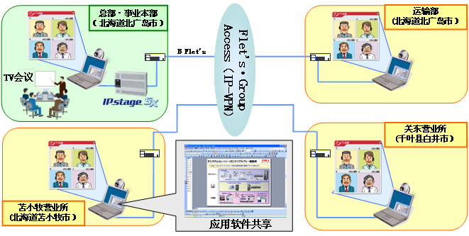 此次開始投入運行的IP電話系統(tǒng),在其總部導入了“IPstage SX”,通過沖電氣的“Com@WILL軟電話”具有的TV會議功能,能將包括總部在內(nèi)的北海道3個事業(yè)所與關(guān)東營業(yè)所進行電話聯(lián)網(wǎng)。各個事業(yè)所之間通過NTT東日本的IP-VPN服務(wù)“Flet's・Group”實現(xiàn)相互連接。