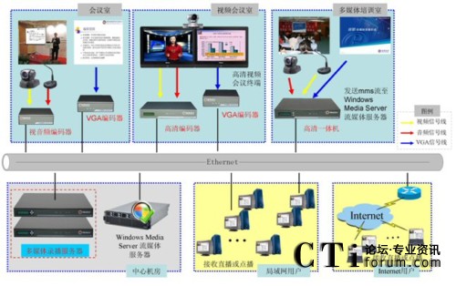 同時(shí)中糧集團(tuán)原有一臺Windows Media Server服務(wù)器,多媒體培訓(xùn)室內(nèi)的高清一體機(jī)在錄制的同時(shí)還發(fā)送mms流至Windows Media Server流媒體服務(wù)器,該服務(wù)器將培訓(xùn)室的實(shí)況視頻在互聯(lián)網(wǎng)上大規(guī)模直播、點(diǎn)播。
