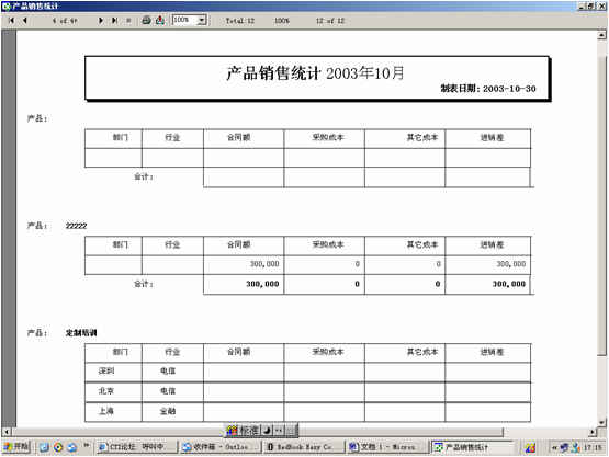 產(chǎn)品合同銷售額統(tǒng)計