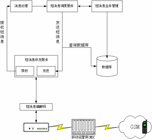包括上層的短消息業(yè)務管理部分和中間層的編解碼部分,兩部分在物理上結(jié)合為一個程序,成為短消息服務系統(tǒng)的軟件部分。